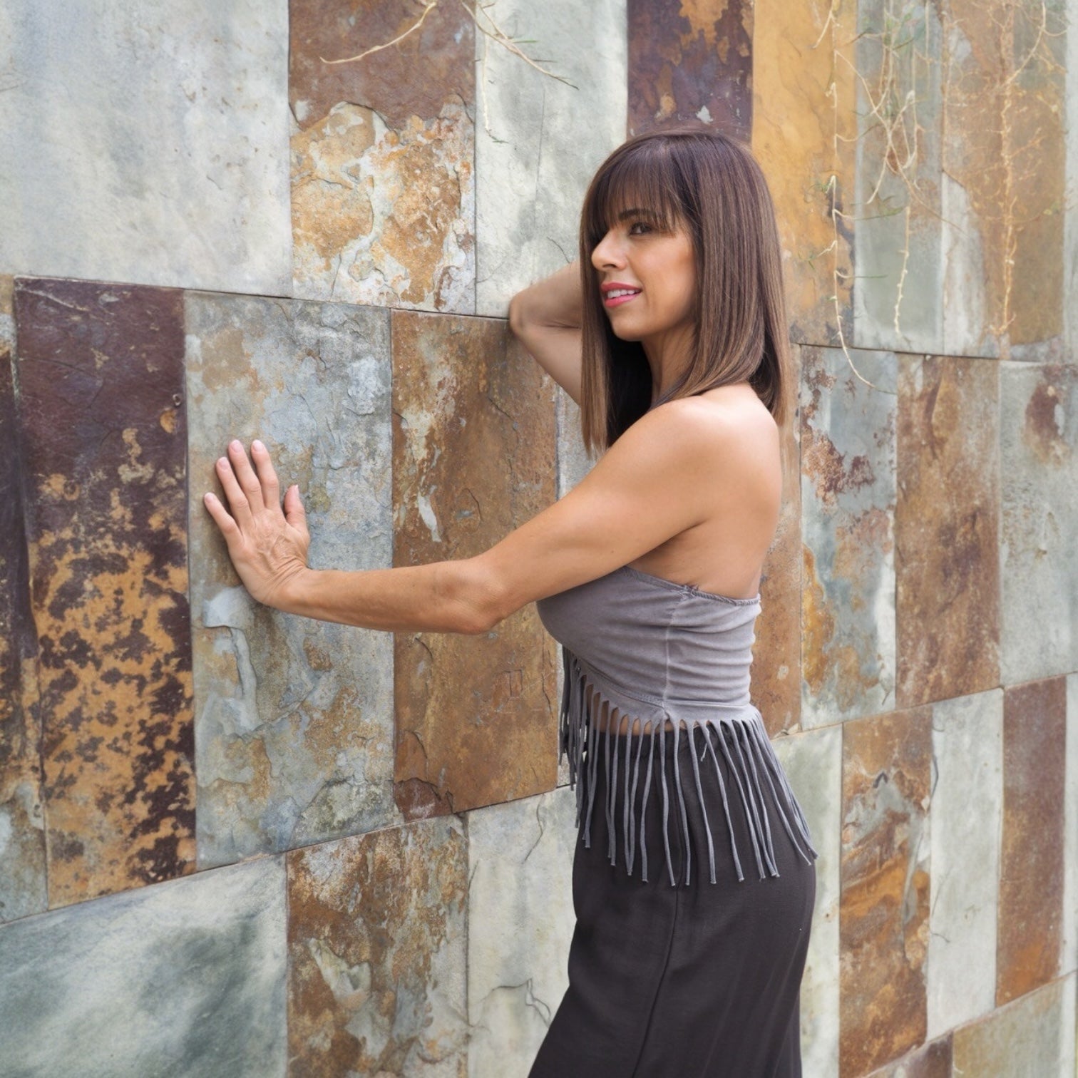 Top de escote cruzado con flecos.